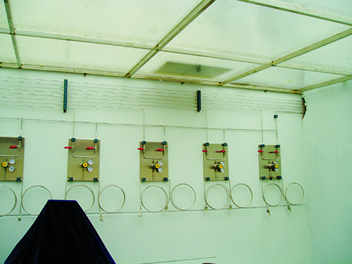 實(shí)驗(yàn)室的很多設(shè)備的運(yùn)行都需要各種各樣的氣體供應(yīng),集中供氣系統(tǒng)作為一種設(shè)計(jì)方案得到廣泛使用,特別是在用氣量大、用氣集中的實(shí)驗(yàn)室,集中供氣系統(tǒng)的價(jià)值會(huì)得以充分體現(xiàn),氣瓶室的安全性必須得到保障,必須采用防爆門、泄爆窗、氣體泄漏感應(yīng)報(bào)警裝置、所有電器電路均應(yīng)采用防爆型的、還應(yīng)考慮防雷、防靜電以及空調(diào)設(shè)備。