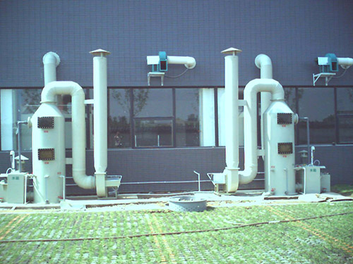 設(shè)備本身包含本體、填充層、除霧層、循環(huán)灑水槽等,設(shè)廢氣入口、出口、洗滌液入口、溢流口、排水口、填充料、循環(huán)水泵浦、循環(huán)水過(guò)濾網(wǎng)、循環(huán)水管路、灑水噴嘴、視窗、維修入孔及洗滌塔內(nèi)部用以支撐及固定之結(jié)構(gòu);塔身材質(zhì)為PP、PVC等,確保設(shè)備本身的耐腐蝕性以增加其使用壽命。使用對(duì)象:各種制造業(yè)廢氣及各類實(shí)驗(yàn)室廢氣之液態(tài)微粒、固體微粒物、重金屬有害物、有機(jī)溶劑、臭氣及水溶性空氣污染物之處理等。